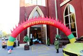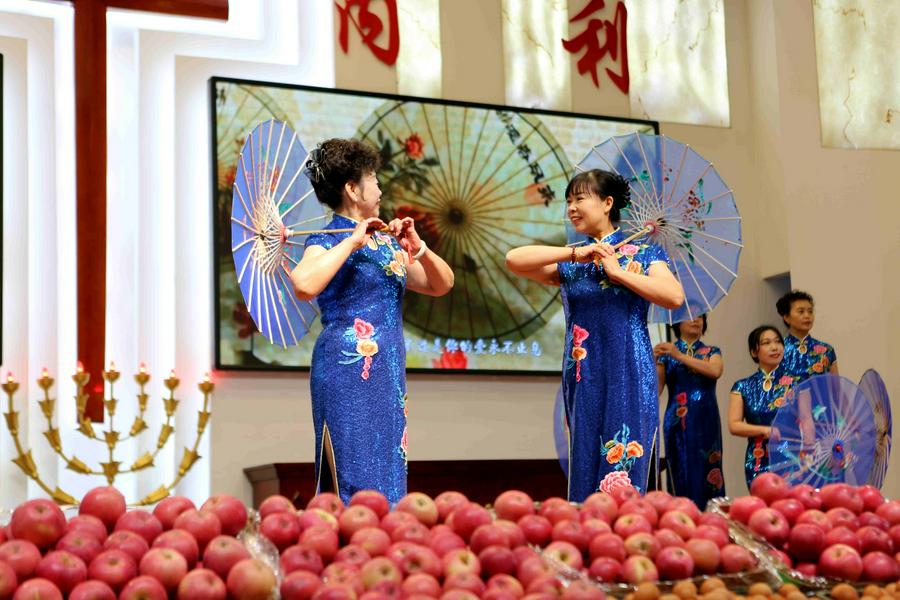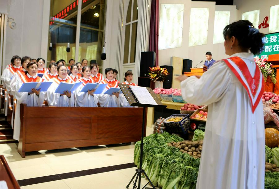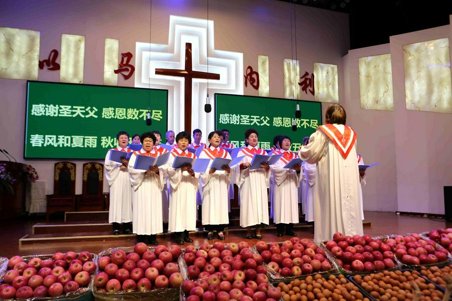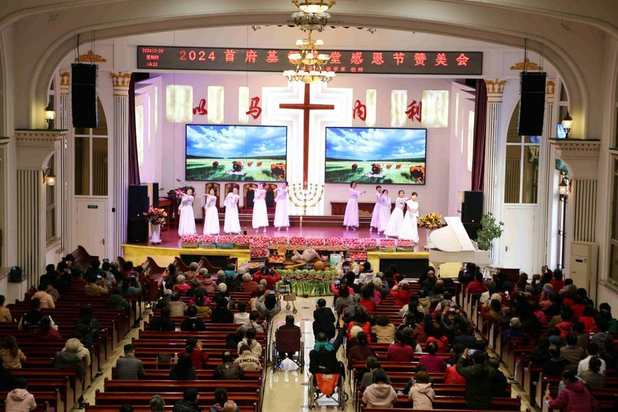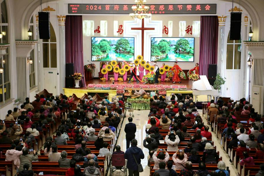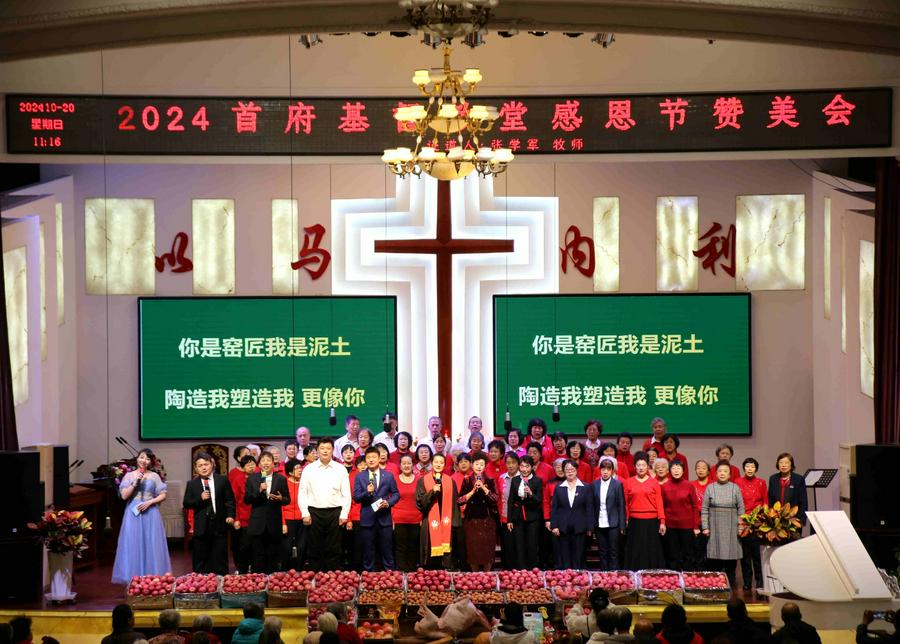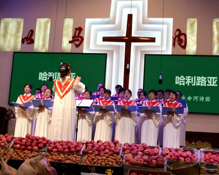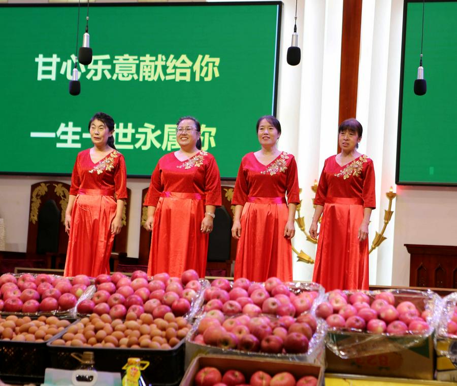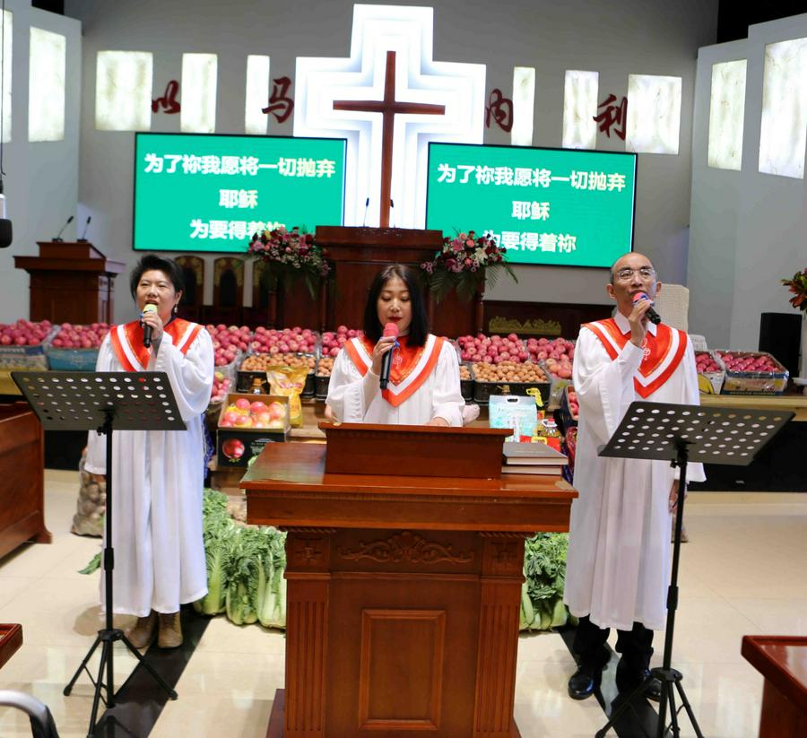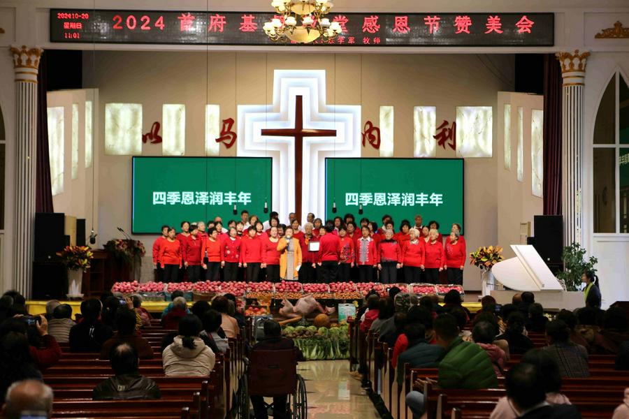 今天,地处辽宁省会沈阳闹市区的首府赐福基督教堂,充满了恩典福气。随着清晨的第一缕阳光照在教堂的十字架上,教堂的教牧同工和各小组弟兄姊妹们早早地已经提前按照各自的分工开始忙碌起来。他们精心布置了会场,主堂正门红色的拱门上“2024年基督教赐福堂感恩节赞美会”在阳光的照耀下显得格外醒目。服务组的弟兄姊妹们侍立在门前,热情地迎接每一位到来的信徒,并为他们送上感恩节的礼物,这些礼物不仅是物质上的,更是心灵上的慰藉和祝福。这是赐福堂第十五个秋收感恩节,大家每年都要庆祝一年一度的稼穑果蔬的丰收、庆祝一年来蒙神恩典众位肢体灵命里的丰收。