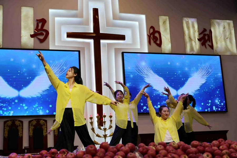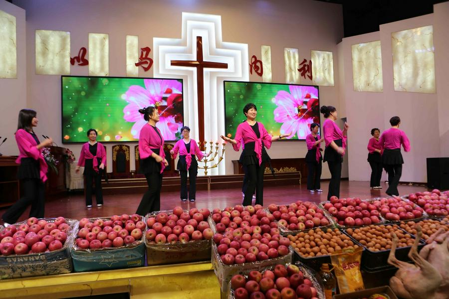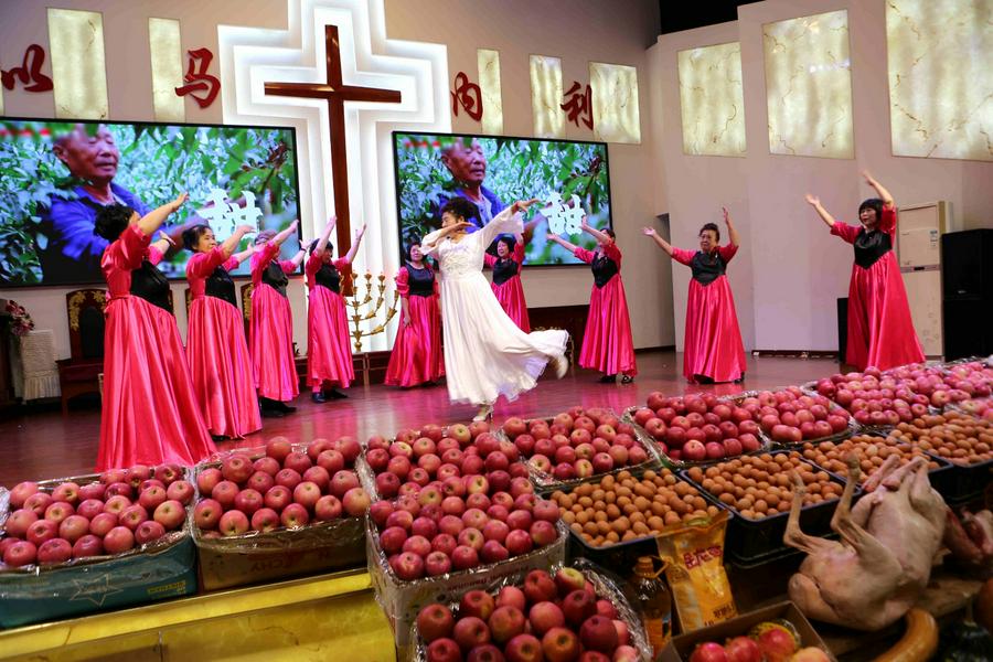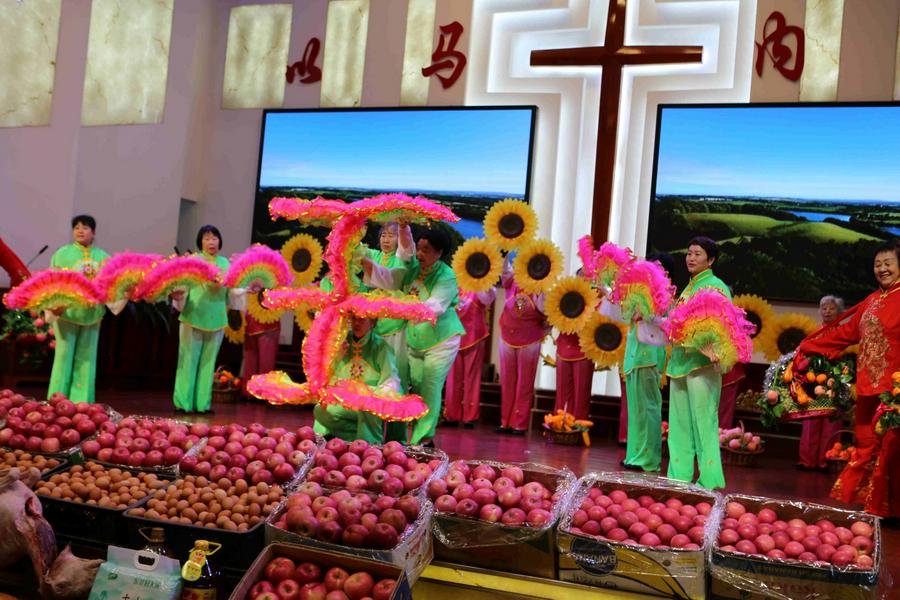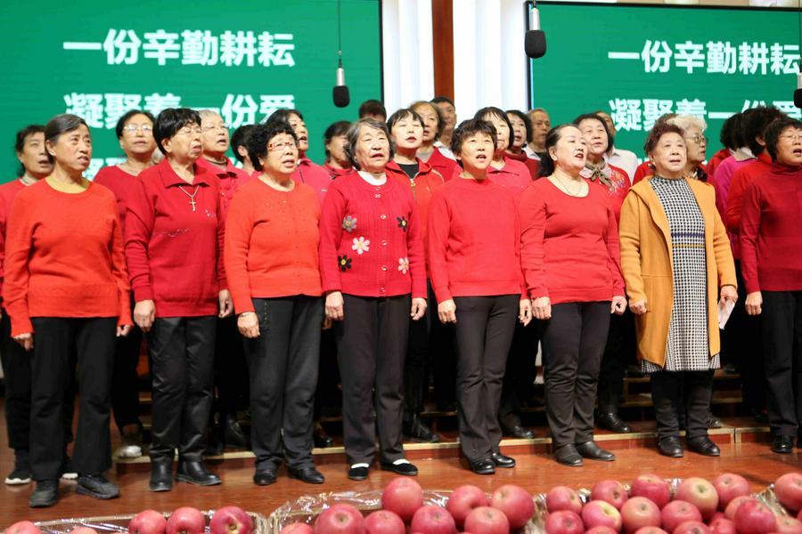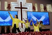 教会生命河诗班的大合唱《哈利路亚》《惟一最爱是你》气势宏伟;清扫组的大型舞蹈《高山低谷都赞美》,台上众弟兄姊妹边歌边舞、献上各种丰收的果实,使人目耳目一新;朱丽霞教士带领的众位姊妹身着中国传统的旗袍在舞台上,把优美的舞蹈献给三一的真神上帝,获得了阵阵的掌声;令人赞叹的是四位年轻的弟兄姊妹以吉他、手风琴伴奏赞美歌诗《与你漫步》等,而且是用中英文双语赞美,形成了一道独特的美丽风景线;一位年逾古稀、远道打车花了50多元前来的李淑范姊妹把自己原创的快板书献给清扫组的肢体;青年团契富有朝气的舞蹈《不要放弃》带来生机勃勃的律动;长者团契大合唱《世纪恩泽润丰年》《秋颂》,他们当中年龄最大的已经八十岁,但是那如鹰返老还童的赞美之声着实令人感动;妇女事工快板《上帝赐恩真无限》;以诺赞美队、舞蹈队、接待组等各个团契、班组的诗歌、舞蹈都很感人,身在这种感恩的环境中,有的传道人和肢体流下了感恩的泪。