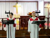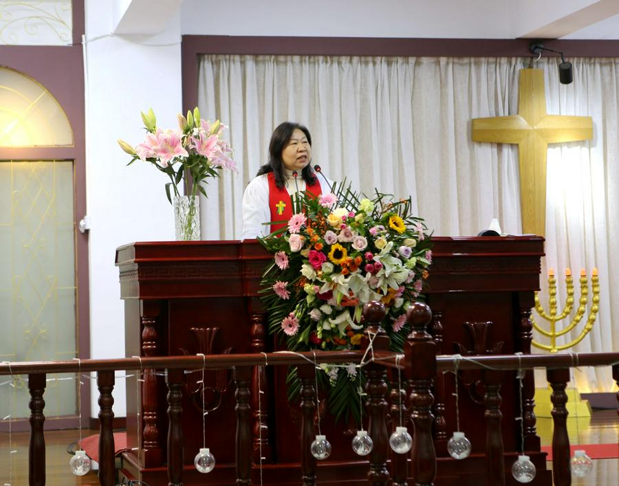 苏盛宝弟兄司会,教会的圣诗班以《新编赞美诗》184首的歌声,为这个节日增添了神圣的色彩。本堂袁明牧师身着圣服,登上圣台,向在场的每一位弟兄姊妹致以节日的问候。她带领会众诵读圣经帖撒罗尼迦前书5章18节和诗篇50篇14节,以“向神感恩”为主题,从三个方面为主证道,与会众分享为何要感恩、什么是感恩、如何感恩。