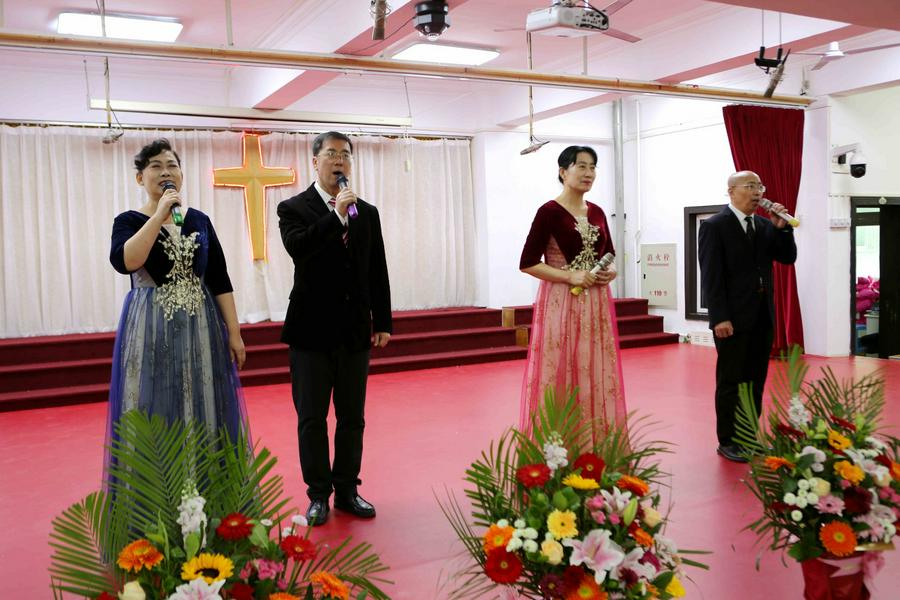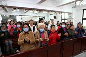 感恩赞美会的最后,袁明牧师发表了热情洋溢的致辞,她一如既往地带领诗班与所有会众一起举手高歌赞美,全场沉浸在圣三一真神的恩典之中,大家如火被挑旺、圣殿被圣灵充满。