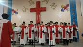 礼拜结束后,大家便开始圣诞节的节目表演,以文艺演出的形式来庆祝主耶稣的降生。首先,圣诗班为主献上了三首圣诞诗歌。此次节目一共有12个,这些节目都是弟兄姊妹耗费将近一个月的时间精心排演而成。他们每日坚持排练,非常用心。尽管天气寒冷,但他们毫不畏惧,有参与的信徒说:“我们要为主表达心意。”