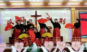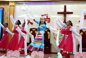 歌舞联谊会在最后以参演的县基督教三自爱国会成员、各基督教活动场所教会负责人、一群年轻的同工登台大合唱《这条路上我们一起走》和歌舞《好消息》带入高潮,此时此刻联谊会场台上、台下会众一起动起来舞蹈,火热的场面、火热的圣徒、火热的献祭,歌舞赞美的大军把感恩的心、感恩的激情献上,好一派同心合意、颂扬赞美的动人场景!