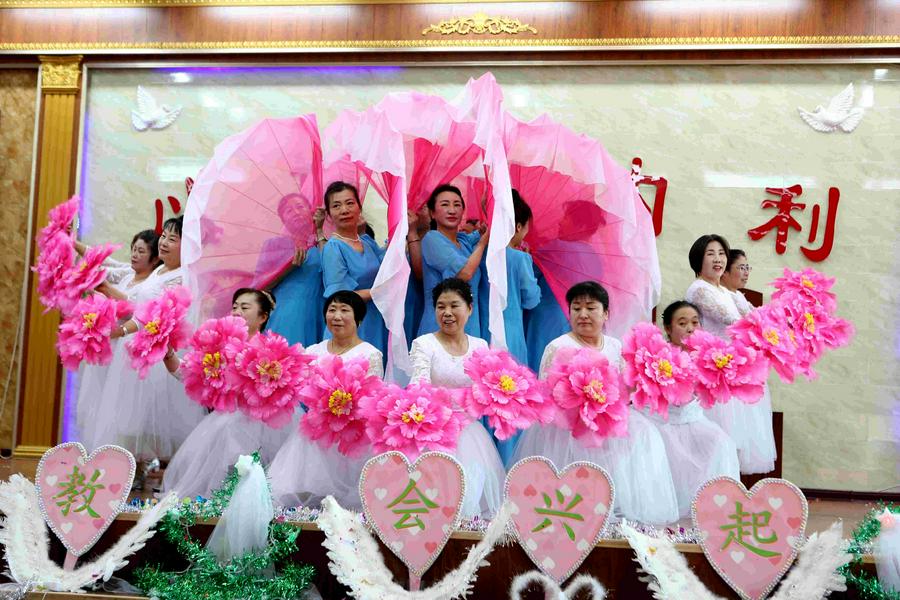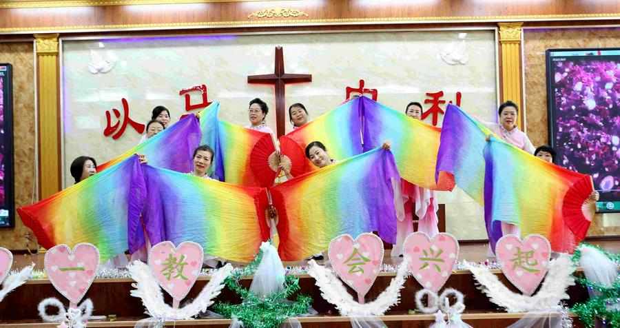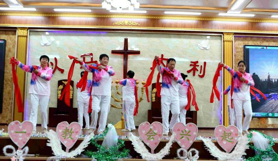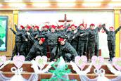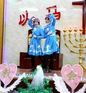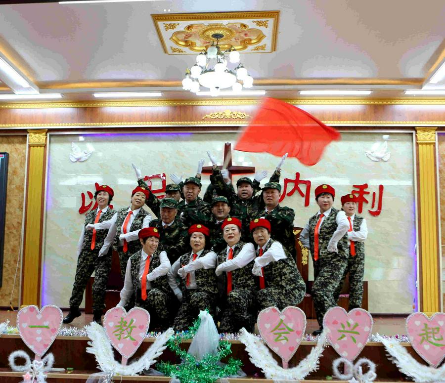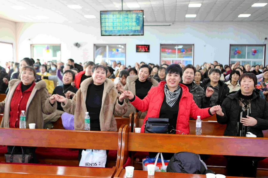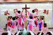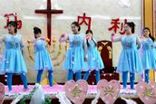 今天的台安县胜利基督教堂的同工喜气盈盈地迎来了本县各个基督教活动点的教牧同工和弟兄姊妹从四面八方来这里参加舞蹈联谊会。大家按照统一的分派坐在殿中,跟随领唱的同工进行会前的赞美。此时,《圣哉三一歌》声响彻在圣殿,众位弟兄姊妹喜乐地高歌颂扬上帝的荣耀。