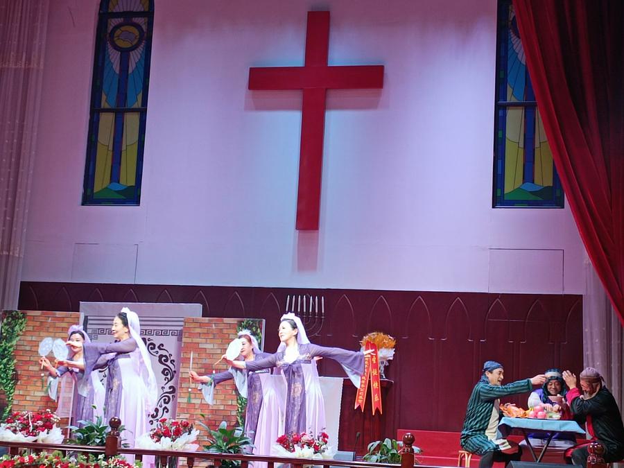 节目演出由王帅传道主持。在青年团契的《赞美筑起神的宝座》《主赐福如春雨》《我定意跟从你》歌声中,大家一起挥手赞美;赵红霞姊妹分享的自己带着两个女儿(其中一位有残障)一路蒙恩所走过的风雨历程,依靠神心灵复生的经历令台下许多人流下了热泪;张明霞姊妹独唱的《所以我不问为什么》唱出喜乐的心声;舞蹈《祝福祖国》《盛世花鼓》《红红的中国情》《求主福佑中华》,在轻歌曼舞中表达了基督徒对伟大祖国的热爱;白发苍苍的刘玉章老人表演的山东快书《列车情缘》,用诙谐语言展现了人间大爱;小品《麻辣婆媳》以生活中的冲突体现了一个信主家庭的改变;长达三十分钟的圣剧《拉撒路》,以中国化的风格深刻描述了拉撒路生前的贫穷和敬虔,淋漓尽致地刻画了财主及法利赛人的不义和贪婪,他们死后截然不同的结局发人深省;段艳杰姊妹分享了自己从小生在信主家庭,后来远离神,又重新回归服侍神的经历;演出在《再爱里声合为一》《新年赞》《新年欢喜歌》中落下帷幕。十二点钟声敲过,陈丽长老发表了新年致辞,回顾了过去一年的工作,对新的一年进行展望,并对大家致以新年祝愿,并做了最后的祝福祷告。
