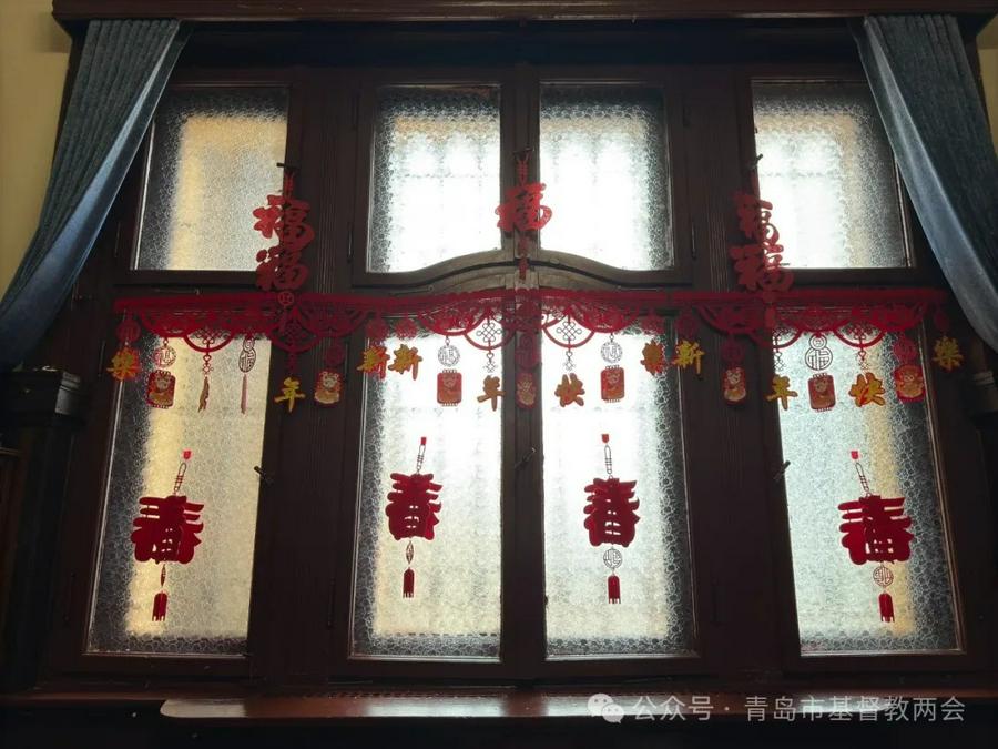 乙巳蛇年,首个世界非遗版春节之际,山东省青岛市两会教牧同工携同弟兄姊妹欢欣喜乐迎佳节。大家奔走探访信徒,送上新春祝福,把教堂里里外外打扫一新,写福字、贴春联、剪窗花、挂灯笼、系中国结,使以中国传统装饰布置的教堂“年味儿”十足,尽情体会节日真意,共度欢乐年,共同祝愿祖国山河无恙、国泰民安!