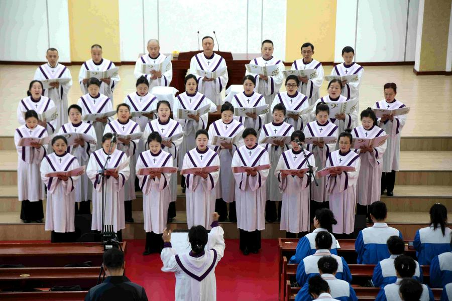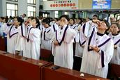 今天,教堂的四个诗班齐聚一堂,他们身着颜色不同的、整齐的礼服,用和谐而优美的歌声,将庄严、洪亮、属灵的赞美诗歌演绎得声情并茂、感人肺腑。歌声在教堂内回荡,如同天籁之音,深深打动了每一位在场的会众。在歌声与祈祷声中,人们的心灵得到了净化与升华,共同感受着上帝的恩典与祝福。