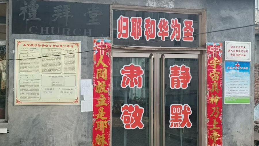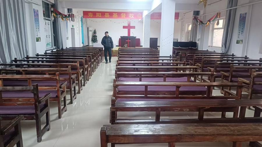 不觉朝霞满天,鸟鸣打破了寂静。阳光灿烂,我们步入院内,眼前是一座中国风格的二层小楼,象征祥瑞的兽头,半圆筒瓦覆盖,砖石斑驳的墙面见证岁月沧桑,这是距今130多年的牧师楼。郑牧师领着我们依次参观,墙上张贴着他们精心整理制作的寿阳县基督教会历史版面,还有泛黄的字画、浸淫历史印记的屏风,虽有所残破,但韵味十足。还有记录岁月沧桑的“礼拜堂”牌匾,遒劲的行书刚健古朴,仿佛都在无声讲述着昔日的辉煌与复兴,见证神的仆人的忠心和委身。一旁是新改建的礼拜堂,宽敞明亮,整齐的桌椅擦洗得十分干净。玻璃门上贴着“归耶和华为圣”“肃静静默”红字,两座建筑相依,印证着教会的历史与传承。