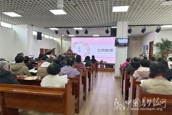 天津市基督教三自爱国运动委员会秘书长兰凤牧师借着《马太福音》5章16节的经文,对姊妹们进行劝勉与鼓励。兰牧师在证道中说道,耶稣基督成就了救恩,神的儿女心被恩感,为教会的同心合一、荣神益人,祖国的时和岁丰、繁荣昌盛,以及世界和平安宁、和合共生献上祷告,为主耶稣基督作美好见证。兰牧师特别鼓励参加崇拜的姊妹们,要继续在家庭、工作和社会中竭力活出信仰的美好,成为推进基督教中国化,与社会主义社会相适应的积极力量。