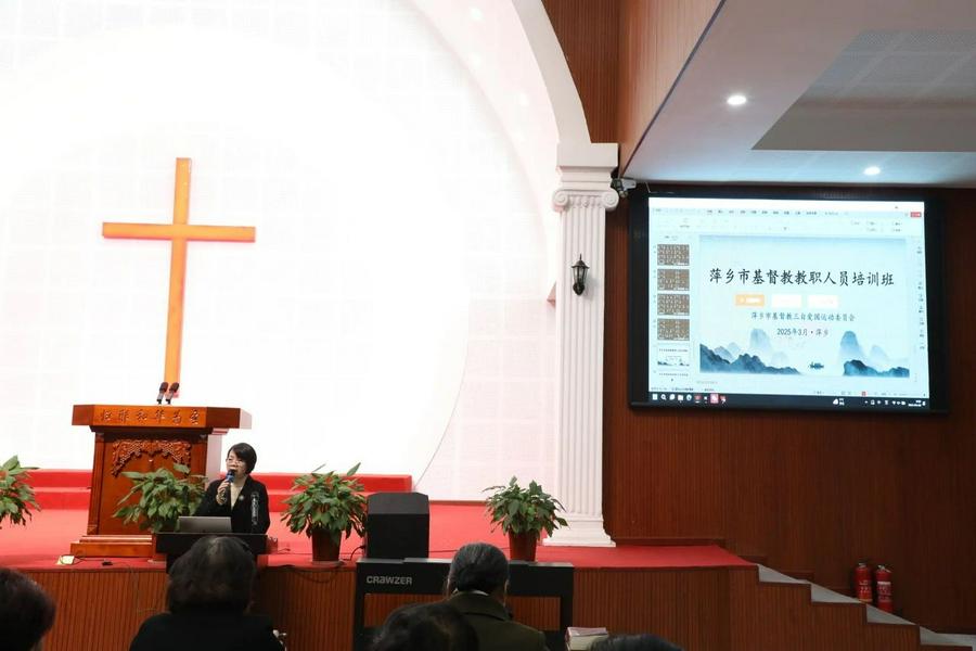 为了加强教职人员的理论学习和实践能力,更好地传递信仰核心信息,增强讲道的吸引力和感染力,进一步提升讲道水平,促进教会的健康发展、推动宗教与社会的和谐。2025年3月28日,萍乡市基督教三自爱国运动委员会在萍乡耶稣堂举办了“萍乡市基督教教职人员培训班”。萍乡市基督教三自爱国运动委员会副主委贺继梅教师主持开班式并致辞。江西省基督教两会办公室闫均同工受邀分享了《讲道学》的基本内容。来自全市各区、县堂点的130余名教职人员参加了此次培训。