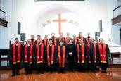 经四路教堂诗班和山东神学院本科三年级学生分别献唱,济南、泰安、枣庄部分县市区的教牧同工和经四路教堂信徒共500余人参加,典礼在新按立的汤泉牧师的祝福中圆满礼成。