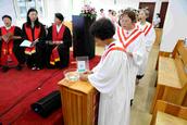 今天的献堂庆典分为两个环节:献堂感恩崇拜和献堂典礼。寓意着会众承认教堂的建成是上帝的恩典、保守和供应,包括物质资源、人力智慧和信徒奉献的硕果,并献上感恩之情。