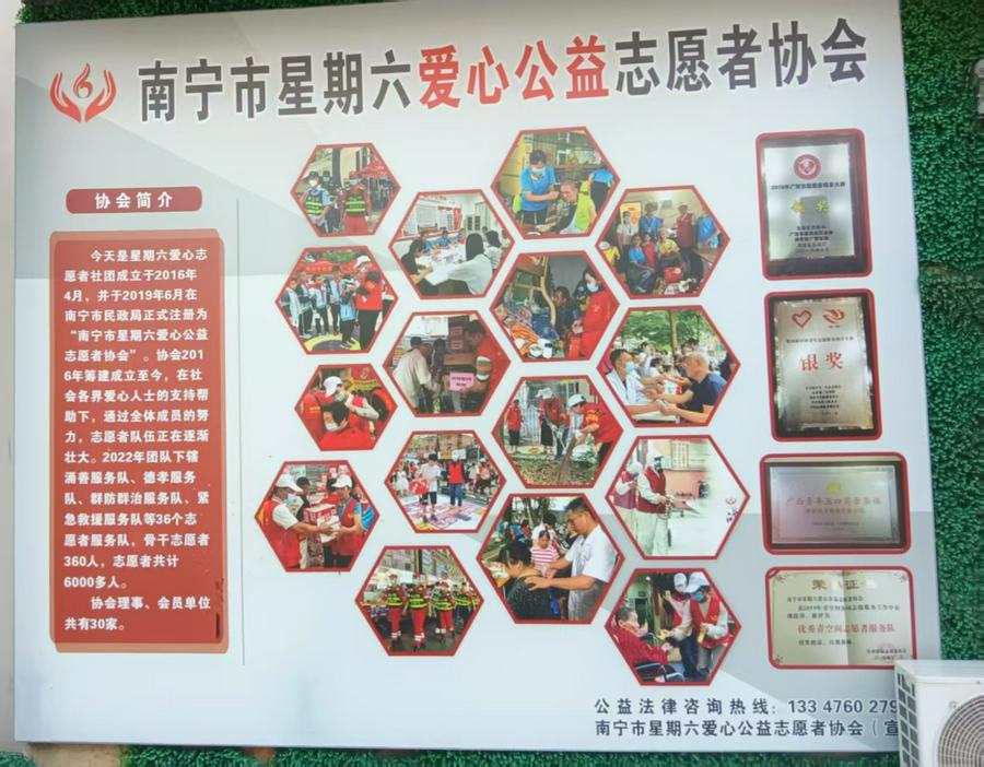 “南宁市星期六志愿者协会”的成立源于一群热心公益的市民,利用周末(尤其是星期六)休息时间自发组织起来参与志愿服务,逐渐发展壮大并规范化。南宁天主教也参与其公益活动,以弘扬“奉献、友爱、互助、进步”的志愿精神,组织引导市民参与志愿服务,服务社会、传播文明、促进和谐为宗旨,天主教的信友也参与其中,主教府作为活动场所之一。