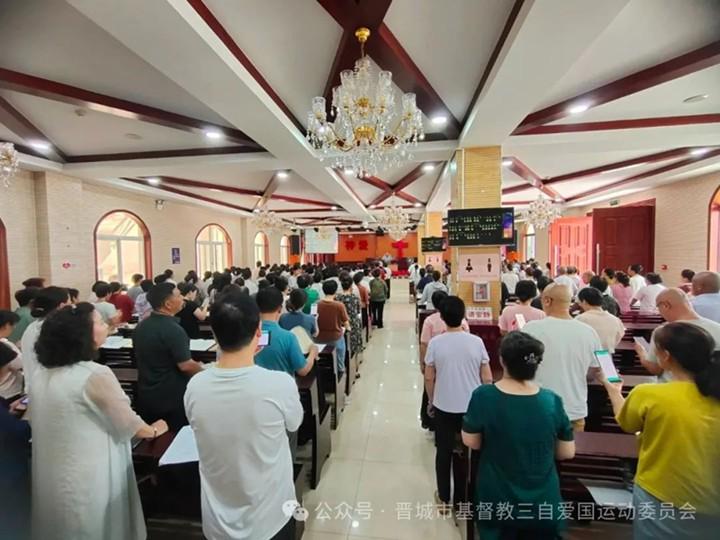2025年7月14-16日,晋城市基督教两会在城区基督教堂举办基督教中国化第一期培训,来自六个县(市、区)堂点的诗班成员和教会负责人近300人参加学习。晋城市基督教会总干士王红才执事主持开班仪式,秘书长侯江峰长老为培训开班代祷。