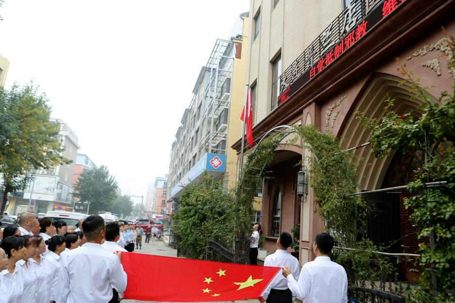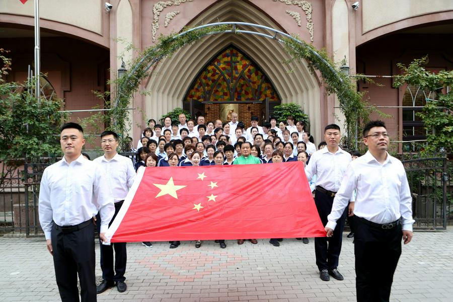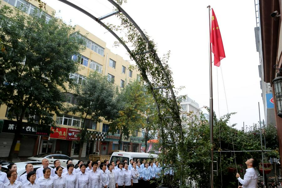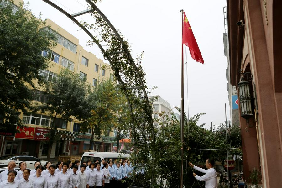 上午七点钟,为表达对新中国的热爱和祝福之情,树牢教会“与党同心,与国同行”的爱国情怀,普兰店文化路基督教堂负责人周波牧师组织全体教职人员及部分骨干信徒举行了升国旗仪式。当五星红旗冉冉升起,雄壮庄严的《义勇军进行曲》奏响,全体人员高唱国歌,向国旗行注目礼,共同见证这一伟大时刻。他们深知今日祖国的繁荣昌盛来之不易,在当下更当以昂扬的姿态扬帆启航,在追逐梦想的征程中,担负时代重任,为实现中华民族的伟大复兴贡献力量。
