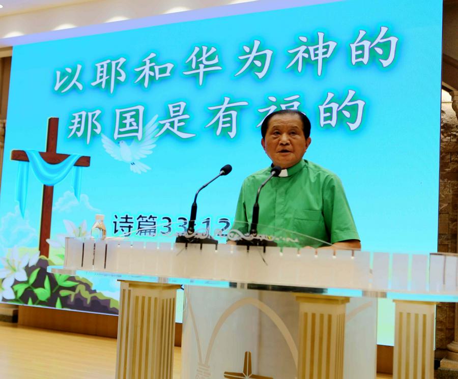 会众高唱《为国求福歌》,聚会开始。周凤楼长老向父老乡亲致以节日问候,祝愿众人在基督里蒙恩。他以“以耶和华为神的,那国是有福的”为题为主证道,并带领会众诵读经文《诗篇》33篇12节。周长老在分享中谈道:“有一种安全叫‘我在中国’,有一种骄傲叫‘我是中国人’,有一种信念叫‘中国红’。人民有信仰,国家有力量,民族有希望。我骄傲,我是中国人。”他强调,上主坐在高处治理万邦,因此万民都当颂赞祂。