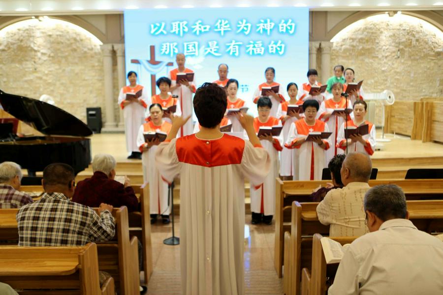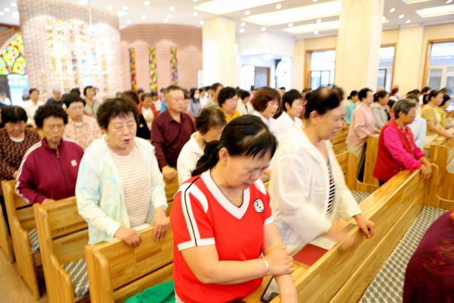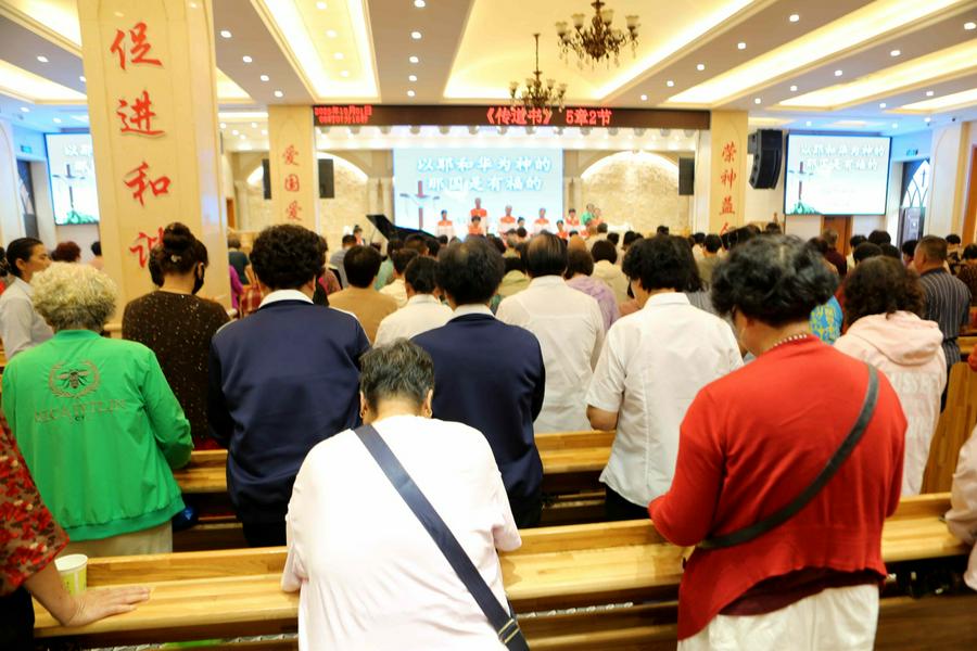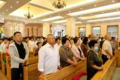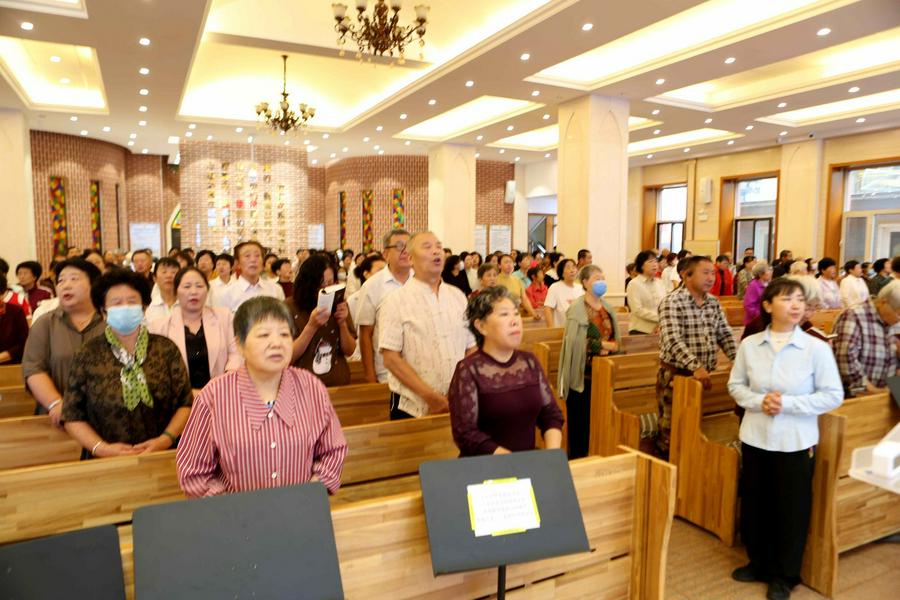 虽然是放假,但是文化路教堂主堂内座无虚席,从四面八方前来的弟兄姊妹欢聚一堂,会场洋溢着“神佑中华”的喜乐气氛与浓厚节日氛围。
