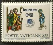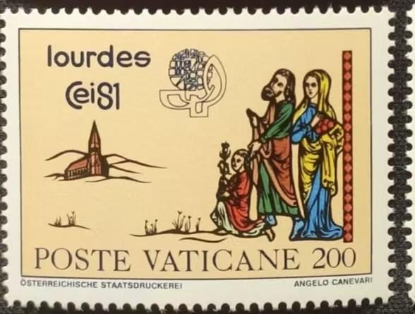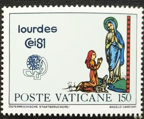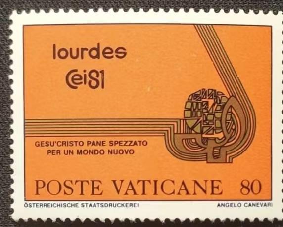 我们今天看到的这一组4枚邮票是 1981 年 4 月 11 日天主教在法国在卢尔德召开的第 34 届国际圣餐会议,围绕圣体圣事相关神学、圣餐礼实践、教会使命与牧灵工作、信徒灵性成长与生活等多方面进行了探讨。与会者包括罗马天主教的主教、神父、修道者和普通信徒等,他们来自世界各地。在会议期间有专门的活动来纪念第一次圣体(圣餐)圣事会议 100 周年,包括特别的弥撒、祈祷和反思等,有助于与会者回顾天主教会的历史和传统,增强对圣体(圣餐)圣事的敬畏与热爱。为此,梵蒂冈邮局发行了这套纪念邮票。