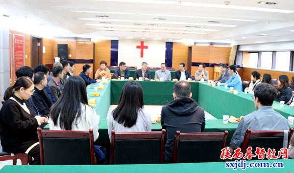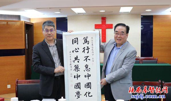 王俊牧师就客人非常感兴趣的神学教育和传媒事工的基督教中国化工作进行了详细回应。他表示,陕西省基督教两会主办的陕西圣经学校立足陕西、兼顾西北,致力于为陕西乃至西北培养更多的高素质神学人才,并通过一年制的培训班广泛培养教会工人,促进教会健康发展。传媒事工的开展,进一步使基督教中国化的重要性和必要性深入人心。杨海涛牧师重点介绍了陕西省基督教两会的培训事工,进一步提升陕西基督教教牧同工的综合素质和侍奉能力。郭云牧师分享了广东省基督教两会的基本概况和开展的主要工作,重点分享了开展的培训事工、传媒事工和基督教中国化事工。