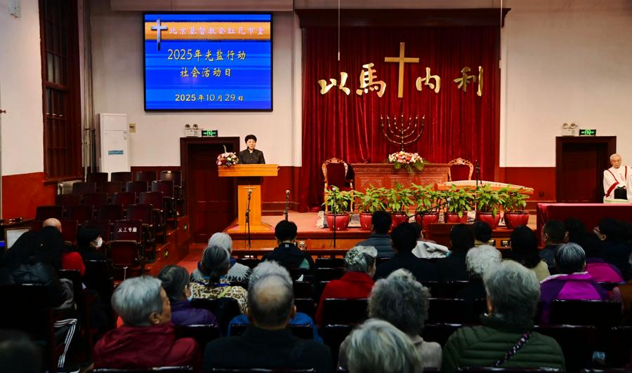 2025年10月29日,由北京市基督教两会主办、缸瓦市堂承办的“2025年光盐行动社会活动日”在缸瓦市堂温馨举行。此次活动旨在继承和弘扬基督教服务社会、造福人群的优良传统。西城区民宗办领导、北京市基督教教务委员会会长柳翠敏牧师及部分堂点主任牧师莅临现场。