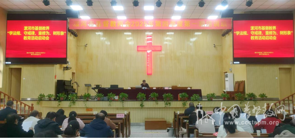 2025年11月17日,河南省漯河市基督教两会召开全市基督教界“学法规、守戒律、重修为、树形象”教育活动启动会。市基督教两会主席、会长李凯牧师主持会议并作动员讲话,全市基督教教牧人员、堂管会主任、神学院校毕业生及财务工作人员532人参会。