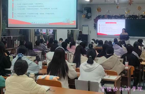 在第十二个“国家宪法日”暨“宪法宣传周”期间,为弘扬宪法精神、推进法治教育,深入开展“学法规、守戒律、重修为、树形象”教育活动,金陵协和神学院组织各年级开展了以“学习宣传贯彻习近平法治思想,推动宪法深入人心”为主题的班会活动,旨在提升学生的宪法意识与法治素养。