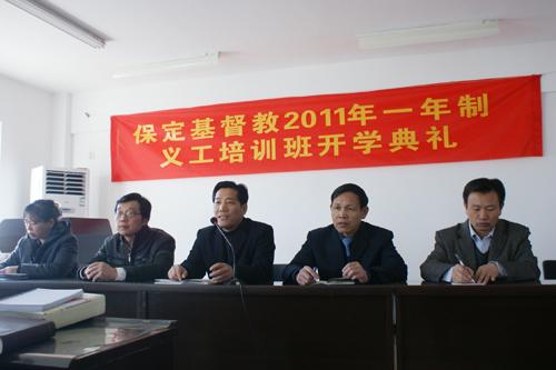 据保定基督教网站消息,2011年3月15日,河北省保定基督教2011年一年制义工培训班在伯特利堂举行了开学典礼。保定市基督教两会主席、会长程宝山牧师,副会长郎福珍牧师出席典礼。