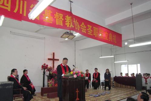 2011年4月17日(星期天),四川省基督教两会教牧工作部邀请省基督教爱国会主席魏康牧师、省基督教协会会长李栋牧师分别到成都市龙泉驿区、资中县教会举行按牧典礼。