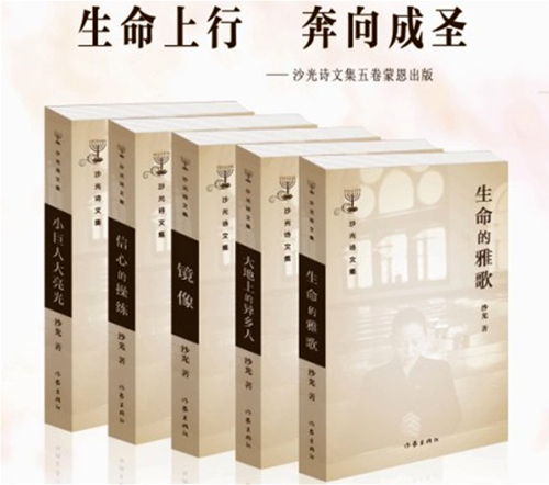 基督徒诗人、神本主义作家沙光的五卷本诗文集日前出版。这五本书分别是《大地上的异乡人》、《镜像》、《生命的雅歌》、《信心的操练》与《小巨人大亮光》。“当神学与文学相遇并融汇时,其中的神学内涵就会使文学飘扬出神圣的香气。”郭文森在诗文集的序言中写到。