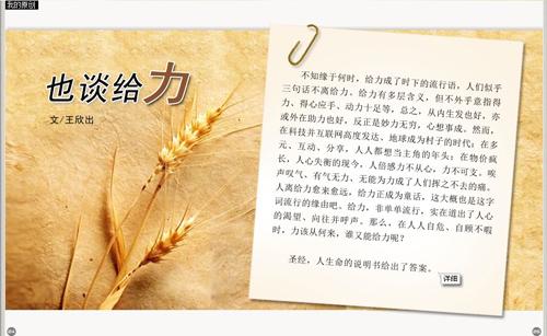 随着教会的发展,主内文字事工有了很多进展,各地教会根据自身的实力、特色,纷纷推出网站、月刊、周刊、报纸等多种形式的文字侍奉,更有牧者针对文字事工进行了深入反思,计文的《文字执事的装备与使命初探》值得每个从事文字事工和有志于文字事工的肢体借鉴。见证栏目《我家侍奉耶和华》、《爱,要常以为亏欠》是两篇真实感人的见证,作者对信仰的认真执着,值得我们学习。而《“啃老”现象的圣经反思》一文,则给每个基督徒敲响了警钟。
