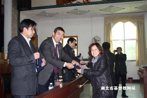 培训结束时省基督教协会朱致国会长、咸宁市基督教两会主席、会长龚刚春牧师为传道员颁发了《中国基督教教职人员证》并合影留念。