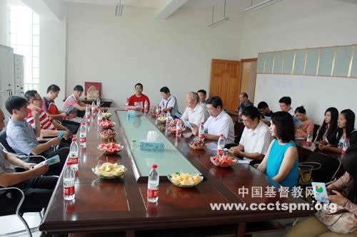 2012年8月3日,江苏省基督教两会安信义牧师一行18人借在贵州接受爱国主义教育的之机,到贵州省基督教两会和贵州圣经学校进行交流。贵州省基督教两会主席、会长、圣经学校校长杨朝云携两会部分同工和圣经学校部分老师接待了客人一行,并在圣经学校会议室举行了座谈交流。
