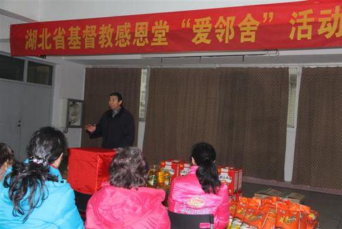 2013年1月20日下午,湖北省基督教感恩堂在感恩堂四楼信徒活动中心举行2013年“爱邻舍”春节慰问活动。感恩堂受助信徒和三道街社区贫困户共200户及部分信徒代表参加本次活动。