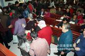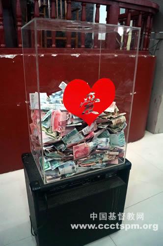 当时,弟兄姊妹排起长长的队伍,其中有年轻的弟兄姊妹,也有白发苍苍的老弟兄老姊妹,有拄着拐杖来的、有坐着轮椅来的,还有小朋友把过年攒的“压岁钱”也投到“爱心奉献箱”。在当日共收到爱心奉献捐款49479.3元。