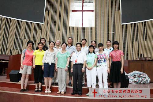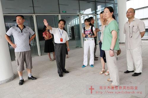 7月20日下午16:30,参加金陵协和神学院第二届旧约圣经研讨会的全国各地神学院校的牧长、老师13人在金陵协和神学院王嘉玮老师的陪同下参观南京市圣训堂。南京市基督教两会李兰成牧师热情接待,详细介绍圣训堂的建造过程,及每一步都充满的上帝恩典和大能的帮助。大家听后非常感动,湖北省两会会长张水莲牧师和众牧长共同为圣训堂和南京教会祷告,求主祝福并大大使用圣训堂。