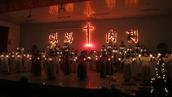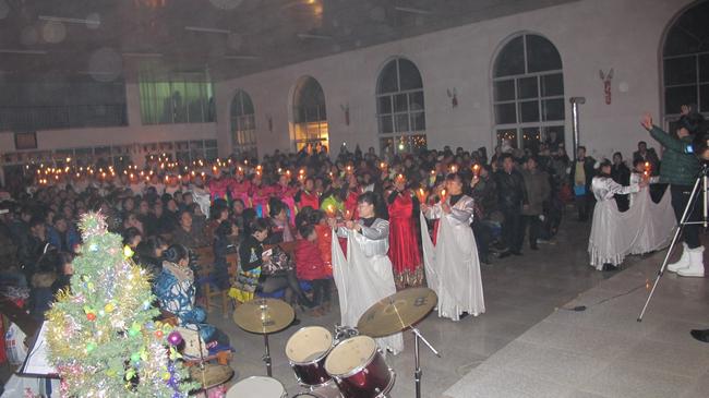 2013年平安夜,鞍山市腾鳌教会在一片烛光中,纪念救主的诞生!在长达5小时的赞美会上,弟兄姐妹们向主献上了各种精彩纷呈的节目,如舞蹈、诗歌、朗诵、快板、圣剧等。值得一提的是,青年赞美团契表演了所表演的几首来自橄榄枝乐队,充满了新时代、新活力的敬拜气息的赞美诗。