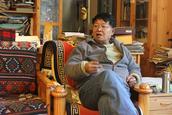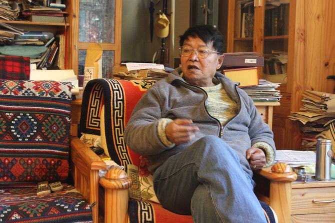 宣科已85岁高龄,是丽江古城纳西古乐会的会长,他背靠沙发坐着,手夹香烟,身着灰色外套和他平时最爱的蓝色牛仔裤,背后的桌子上摆满了资料、书籍和录影带,后面的书柜里陈列着各样书籍,有些零乱,来自世界各地的贺卡挂满了小屋,就在他的这个书房里,记者和宣科老师坐在一起,听他讲述丽江第一个基督徒,即他的父亲宣明德的故事。