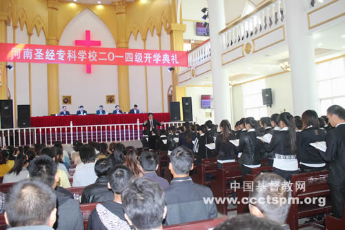 经过一系列的入学教育后,2014年10月14日上午十点,河南圣经专科学校2014级新生开学典礼隆重举办,全校师生300人参加。