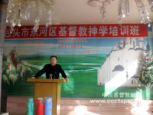 据包头东河区基督教两会网站报道,东河区基督教两会用了半年的时间来准备此次培训班。此次培训的讲员是拥有多年牧会经验的牧者,包头市统战部民宗处腾处长也受邀分享。腾处长在11月18日做了讲话,他指出要坚决抵制异端邪说,反对渗透。
