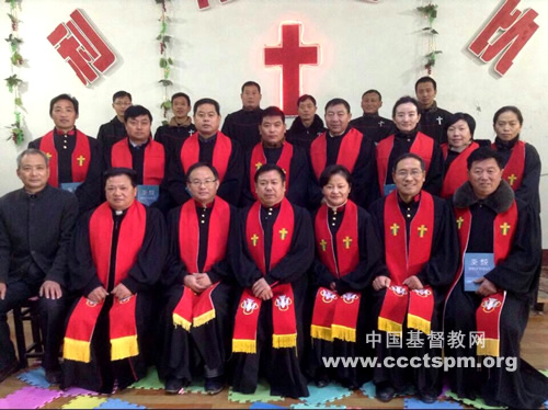 本次圣职按立由江苏省基督教三自爱国运动委员会副主席万超牧师主礼,史历牧师、张虔敬牧师、倪金礼牧师、皇甫立法牧师襄礼,共同为这25位同工行按手礼:晋升徐同操、张洪兵2人为牧师,按立张丽丽(女)、蔡伟伟(女)、陈学善、刘学金、高尚英(女)5人为牧师,按立王士国、程凤雨2人为副牧师,按立冯兴平、李怀伟、李中华、丁海伟、王正清、贾鹤标6人为长老。