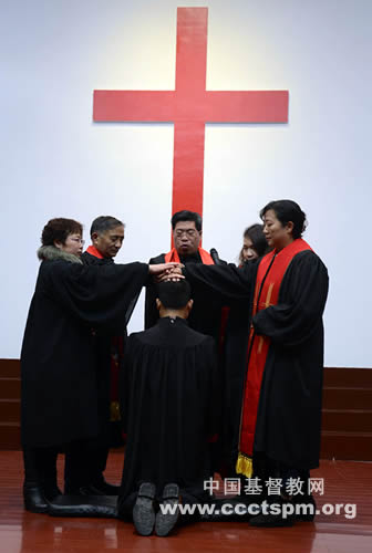 典礼由江苏省基督教三自爱国运动委员会主席张克运牧师主礼,镇江市基督教两会主席、会长尹素华牧师;江苏省基督教协会总干事赵惠娟牧师和常州市基督教两会主席、会长梁化平牧师,以及丹阳市基督教会杭美华牧师襄礼.按立镇江教会崔虎、朱锁英(女)为牧师,谭彩和为长老,同时按立常州武进教会陈金标为长老。