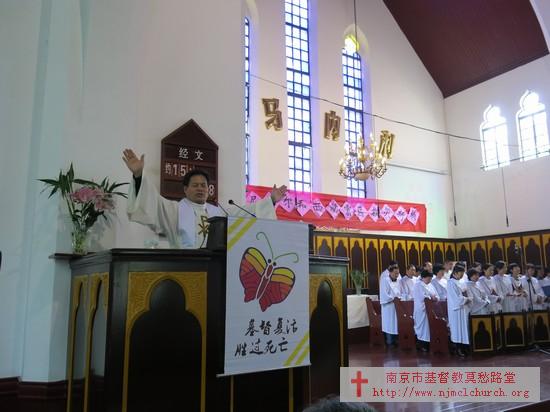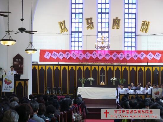 这是莫愁路堂5月3日举行的主日礼拜,约1800信徒参加。主任牧师李兰成带领会众为前不久在遭遇8.1级强烈地震的尼泊尔灾区和受此影响的西藏地区祷告,并号召大家捐款救灾。