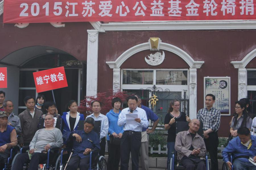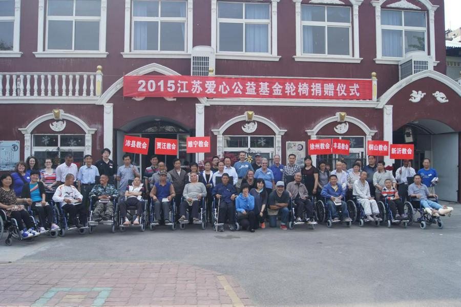 爱德基金会•江苏爱心公益基金2015年轮椅捐赠仪式于5月18日在江苏徐州市基督教复兴堂举行,此次共发放轮椅60台。