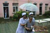 除了有医生给老人检查身体、介绍暑期过夏科普知识。芦苇之家义工还送去常用的防暑降温用品。突如其来的雨,医生们分头搀扶行动不便老人进入屋子休息。