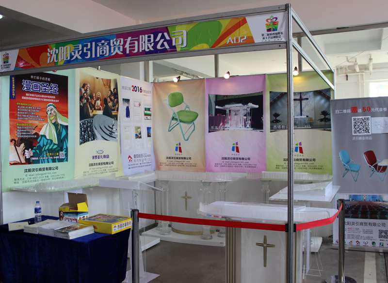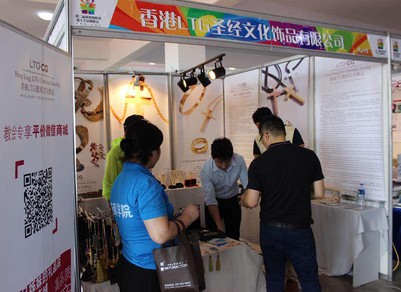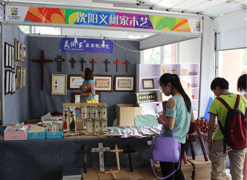 本届中国基督教艺术品博览会在东北神学院的体育馆内进行,展会企业分布在体育馆一二层,一层主要是基督教的图书、圣诗服、圣具、工艺品等教会内需要的产品,二层主要是基督徒经营的企业展示,其中包括食品、生活用品等。