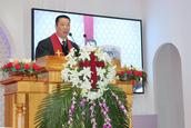 鞍山市基督教协会会长袁明牧师引用哥林多前书3章11-13节经文展开庆典礼拜的讲道,“教会的根基是耶稣基督,除他之外并无别的根基,一个建筑物的稳固要看他的根基,信徒的根基就是主耶稣基督。”袁明牧师从三个方面来讲述了教会的存在意义,“一,耶稣是教会的根基,基督徒的信仰要建立在基督这块唯一真实恒久的属灵磐石的之上;二,教会是金灯台。教会是蒙神呼召出来的人聚集地,我们在地上的生活反映出我们属灵的生命;三,教会和基督的关系。教会是新妇,基督就是新郎。教会是葡萄树,基督就是枝子。基督是头,教会就是身子,基督徒就是身上的肢体。”
