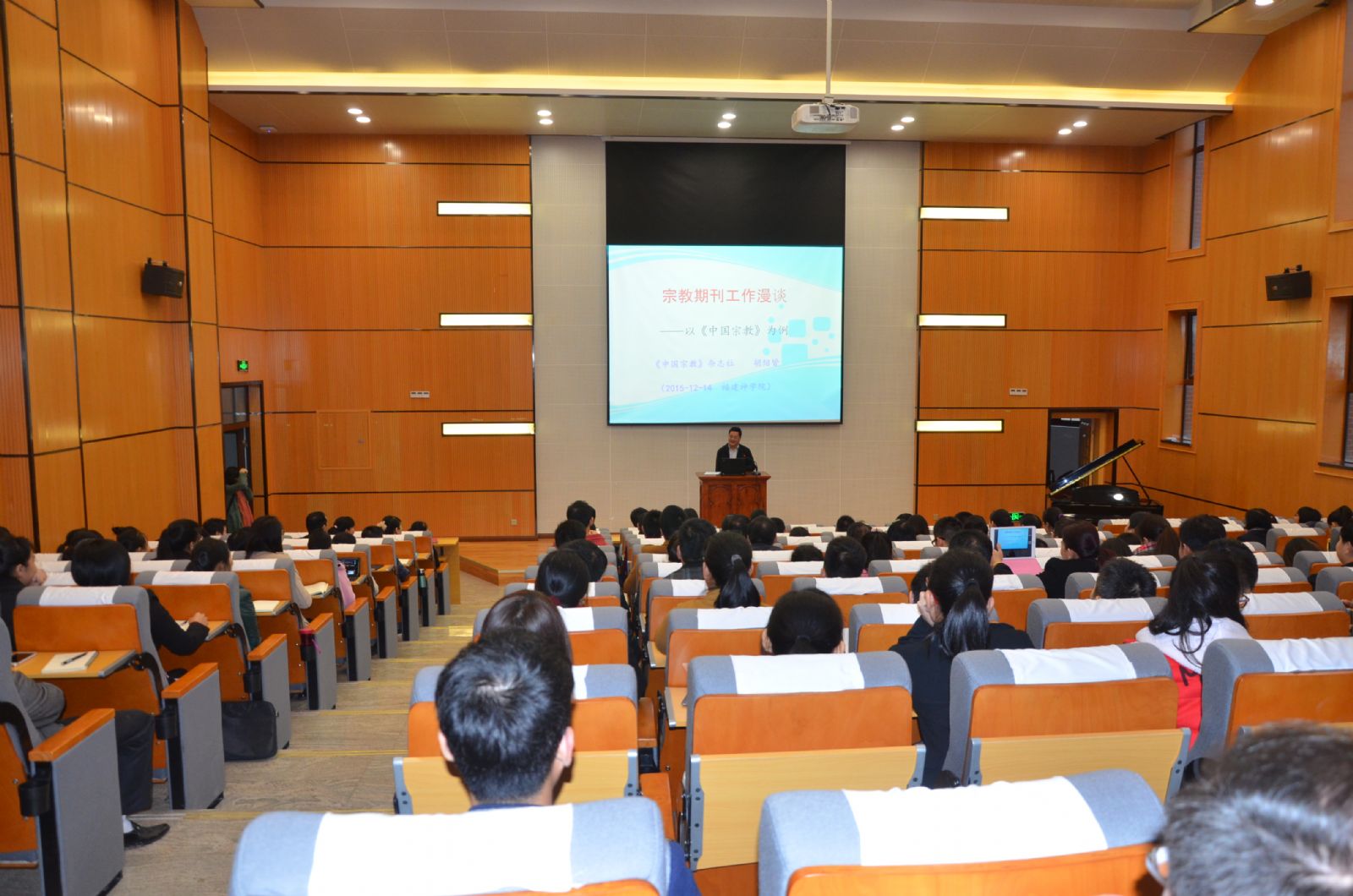 2015年12月14日,中国宗教胡绍皆主编一行在福建民族宗教研究所谢志清所长等的陪同下来访福建神学院。胡绍皆主编应邀在福建省基督教两会举办的第三期文字写作培训班上授课,培训班于福建神学院学术演讲厅举行,由省基督教三自爱国运动委员会主席岳清华牧师主持,学院全体师生与部分有写作恩赐的青年教牧同工参加了培训班学习。胡主编以其丰富的学识与独到的见解将文字写作的技巧向大家娓娓道来。