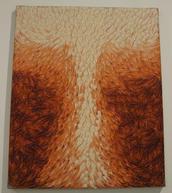 展厅内有十多幅画作,其中有白野夫的《末了》、岛子的《上帝黄金》、郭金平的《救赎》、英德的《沙漠中开江河》,还有何健的《窄门系列》等雕塑作品。