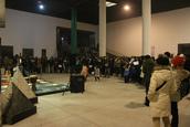 随后,基督徒歌手张敬、白子各唱了三首赞美诗。在寒冷的展厅内,有人搓着手、哈气取暖。虽然冷,但一些会众仍然高兴地跟着一起唱、拍掌,有的还跳了起来。