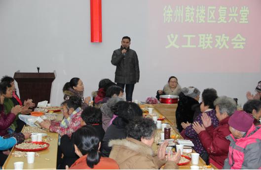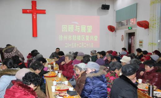 2015年12月28日上午,徐州市基督教复兴堂召开了迎新年感恩联欢会,本堂教职人员和300多名义工骨干怀着一颗颗感恩的心欢聚圣堂,共同回首滴满上帝恩典脂油的路径。市基督教协会会长、复兴堂负责人乔建设长老主持联欢会。