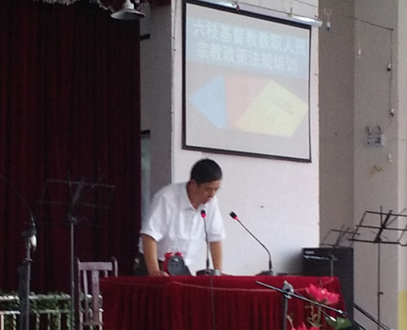 第二阶段由六枝特区民宗局、特区政法委、特区公安局禁毒大队等单位授课。首先禁毒大队以反映光碟并宣传毒品的危害性,鼓励宗教人士要参与禁毒斗争。其次是民宗局领导讲解《宗教事务条例》,加强宗教信仰自由宣传,鼓励教牧人员要学法、懂法、知法、守法。最后,由特区政法委放映光碟宣传国保安全知识。